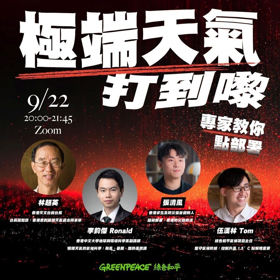 綠色和平 ︳「極端天氣打到嚟 專家教你點部署」網上教室
