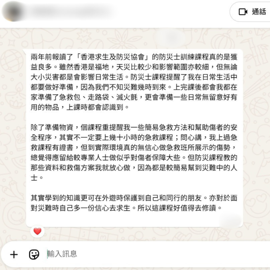 畢業後可加入香港防災士義工團隊,成為社區防災中堅力量,學習唔會因課程完結而終止。