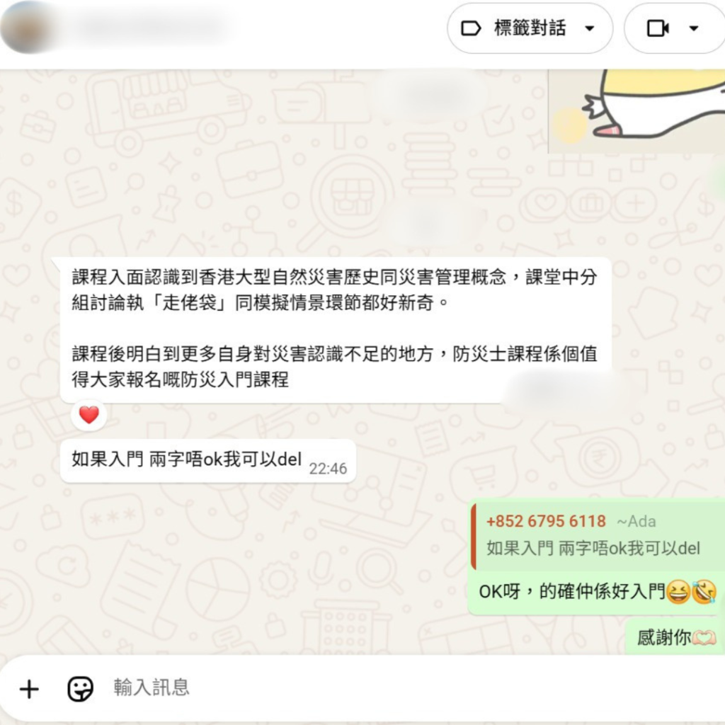 課程內容完全針對香港本地災害特性設計,涵蓋颱風、水浸、火警、停電等真實情境,唔係照搬外國理論。
